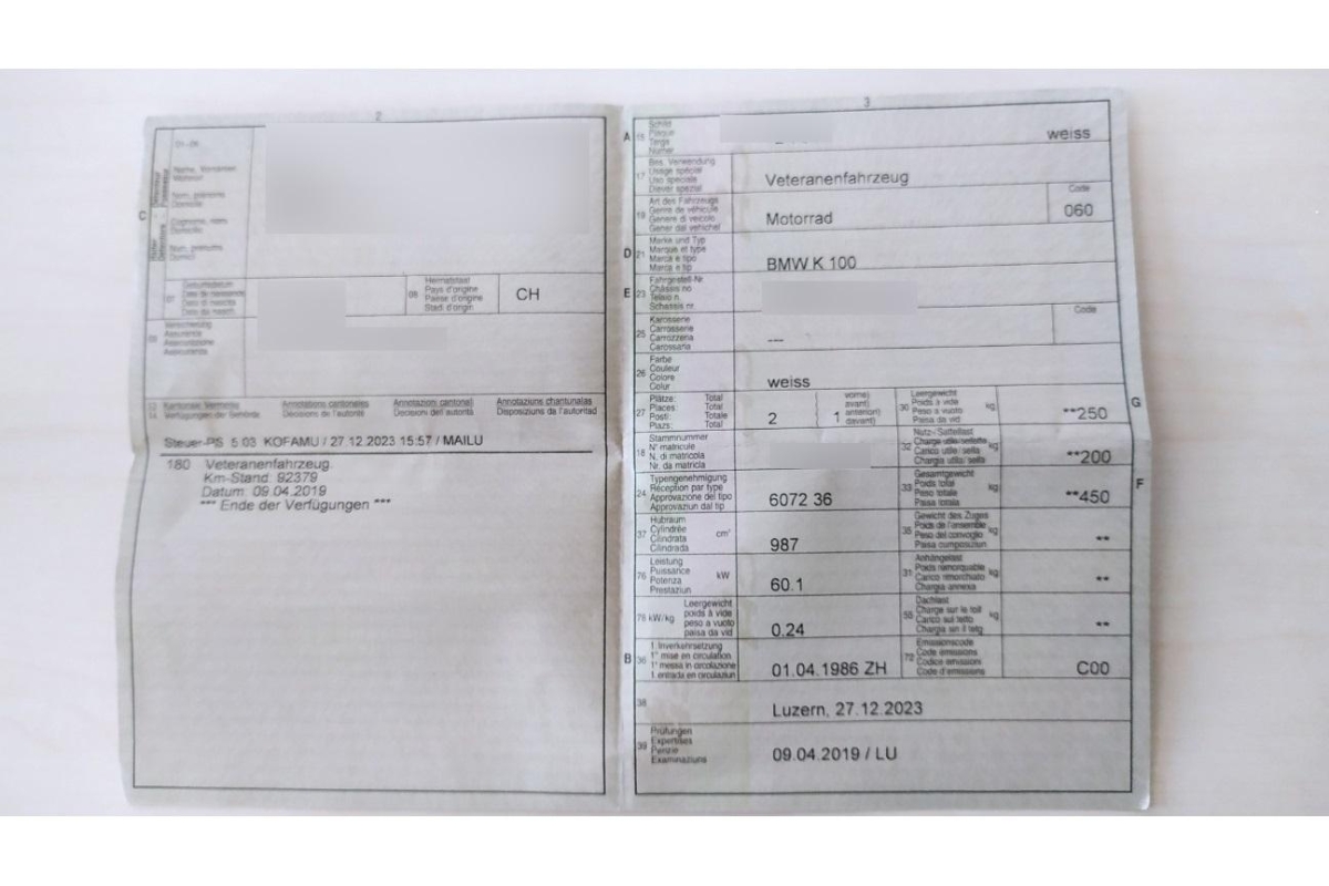 | Fahrzeugausweis | Vorhanden |