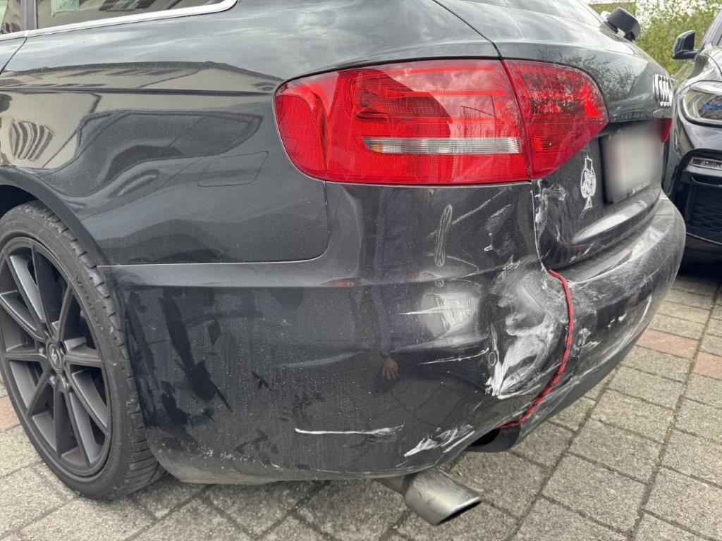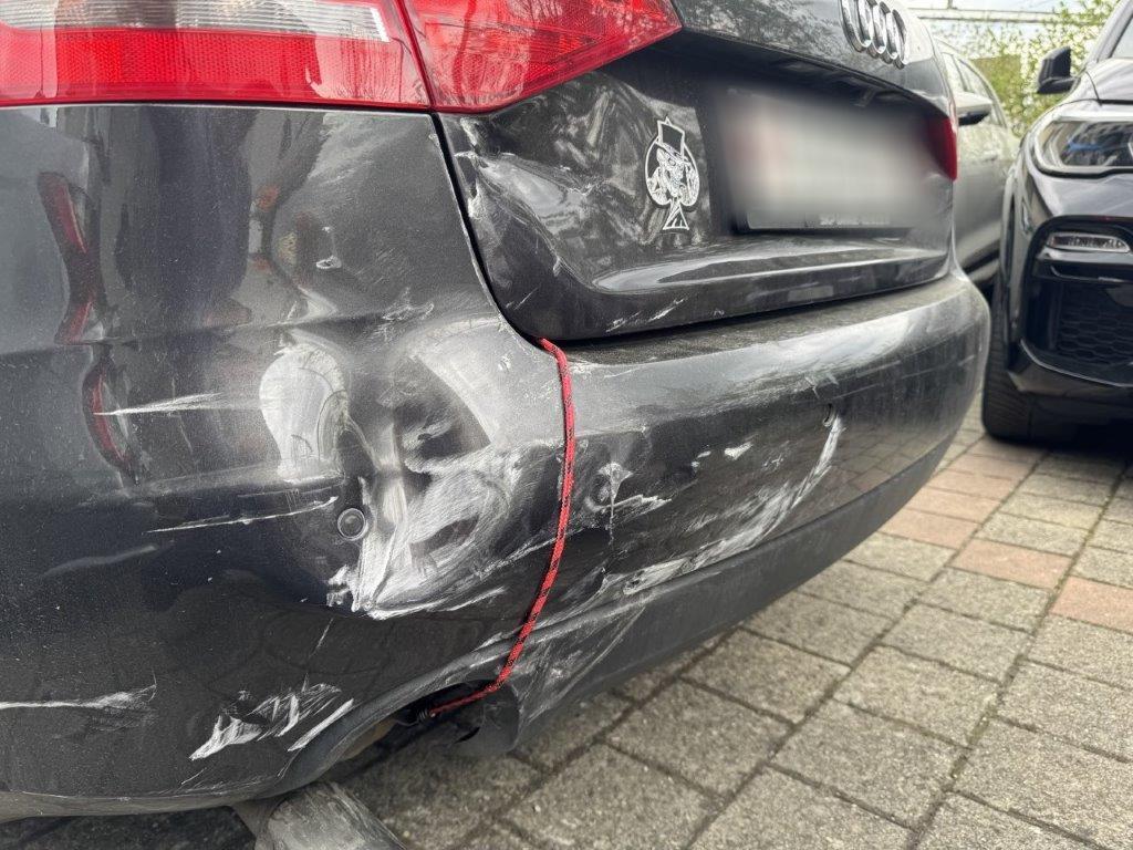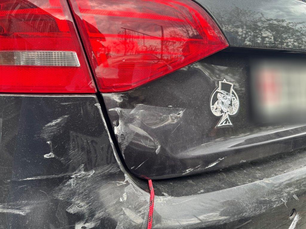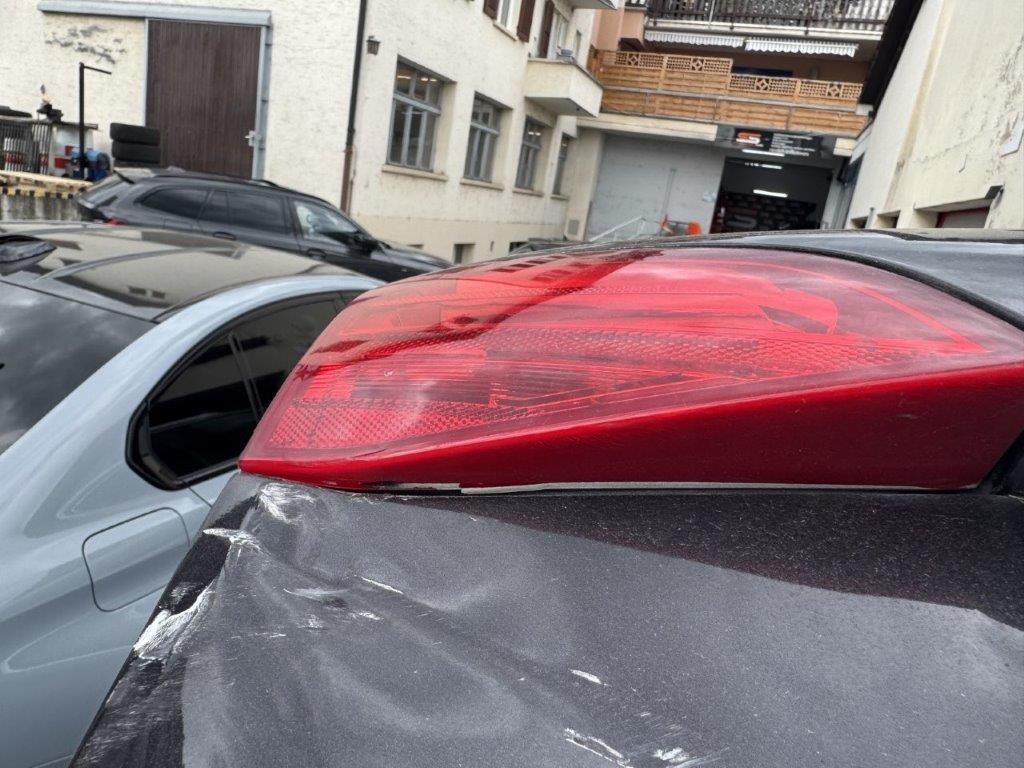 | Schadensbeschreibung | Stossstange hinten und deren Halter zerbrochen. Heckklappe gestaucht. Heckleuchte links innen zerbrochen. Heckblech eingedellt und verbogen. Endschalldämpfer und Auspuffanlage verbogen und gestaucht. Diverse Carrosserieteile leicht beschädigt. |