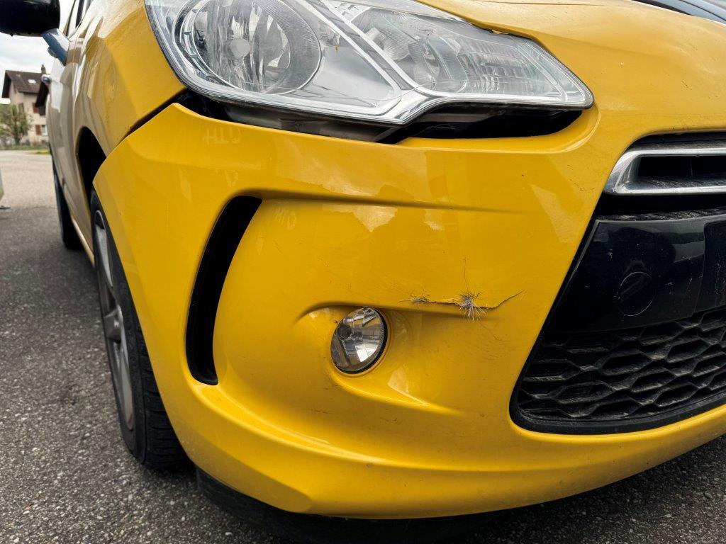 | Schadensbeschreibung | Stossstange vorne zerbrochen. Kühlergitter zerbrochen. Nebelscheinwerfer rechts zerbrochen. Scheinwerfer rechts zerbrochen. Kotflügel rechts eingedellt. Diverse Carrosserieteile leicht beschädigt. Motorlampe leuchtet, Motor läuft unrund, Ursache unbekannt. |