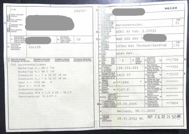 | Sonderausstattung: | 9565 CHF | Reparaturkosten: | 21816 CHF |