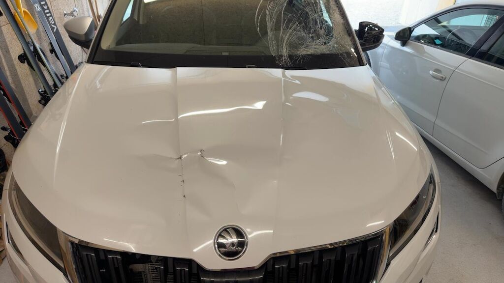 | Opis uszkodzen: | Tierschaden Front. Dabei wurden die Stossfängerverkleidung, der Kühlergrill, das Frontblech, der Klimakondensator, die Motorhaube, die Frontscheibe, die A-Säule links oben, der Aussenspiegel links sowie diverse Anbauteile beschädigt. |