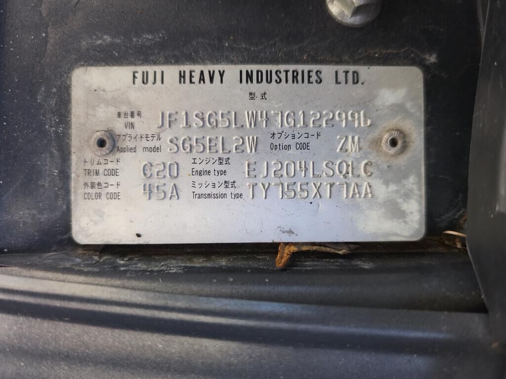 | Podwozie: | JF1SG5LW47G122996 |
