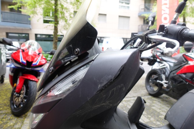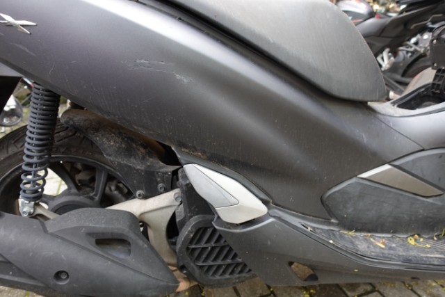 Wichtige HinweiseSchlüsselNur ein Schlüssel vorhanden. Kategorie Fahrzeug nach Diebstahl aufgefunden. Zweirad-Kategorie Roller Weitere wichtige Hinweise Kilometerstand nicht lesbar. Geschätzter Kilometerstand: 17'000 km BeschädigungenLinks Linke Seite beschädigt. Rechts Rechte Seite beschädigt. Weitere Beschädigungen Batterie fehlt Defekte Verkabelung Ausstattung |
