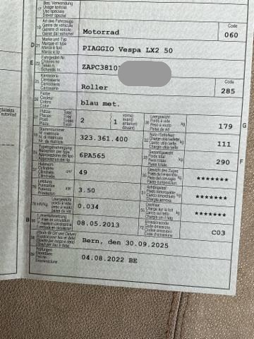 | Typ: | Vespa 50 LX2 | Moc: | 2 kW |