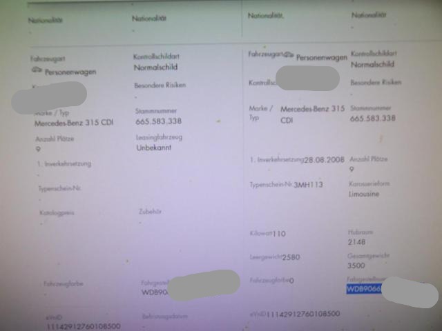 | VIN | WDB9066331S****** | Reifenprofil in %: | |
