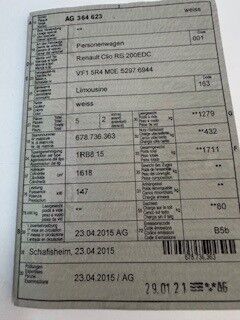| Koszt naprawy: | 0.00 CHF |