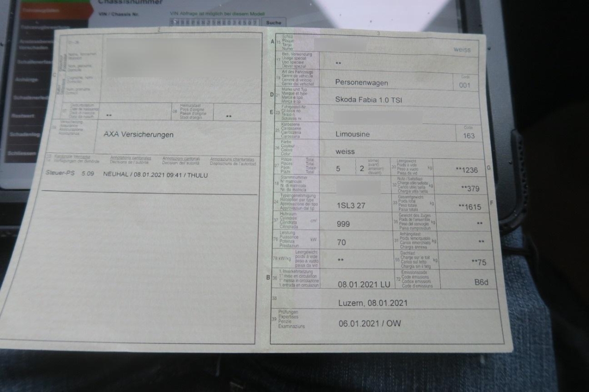 | Fahrzeugausweis | Vorhanden |