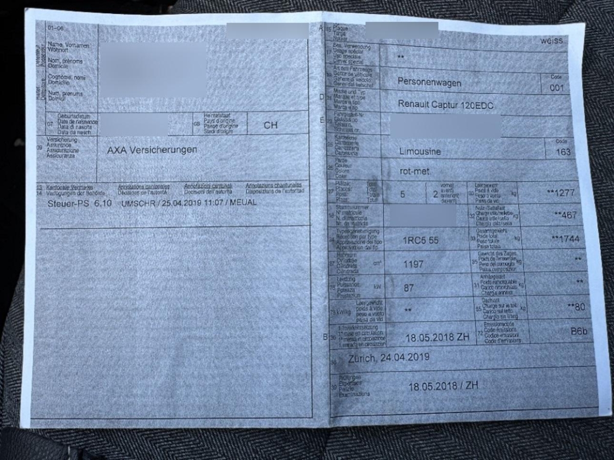 | Fahrzeugausweis | Vorhanden |
