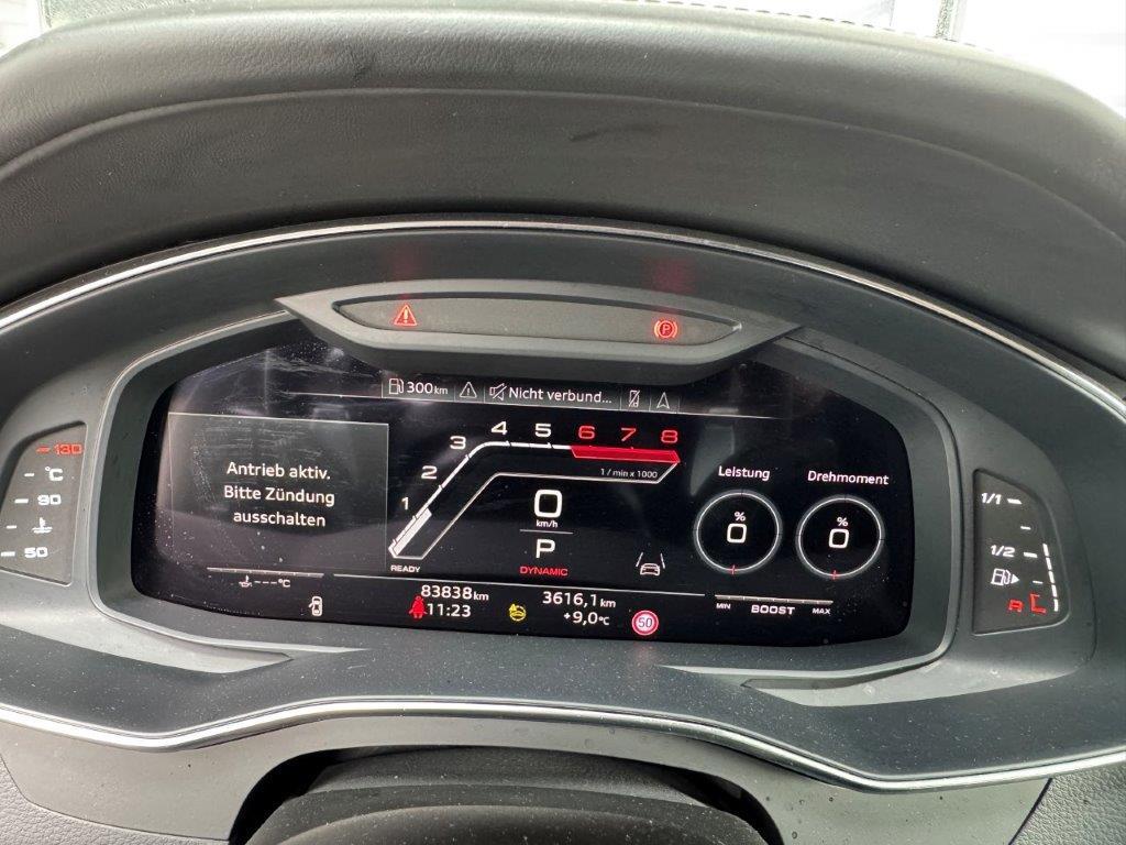 Pack Ablage, Stop + Start System, Aussensp. el.verstellbar/heizbar/abblendbar/ ankl./Memory, Tempostat, Gepäckraumklappe elektrisch öffnend und schliessend, Wärmeschutzverglasung, Scheinwerfer Reinigungsanlage, Aussenspiegel in Aluminiumoptik matt, Dachreling Alu, Leichtmetallräder 21" 10Speichen, Servotronic, Adaptive air suspension, Ottopartikelfilter, Audi drive select (Fahrzeugcharakteristik), Airbag Fahrer- und Beifahrerseite, Seitenairbag Fahrer und Beifahrerseite, Seitliches Kopfairbagsystem SIDEGUARD, Audi Lane Assist (Spurverlassenswarnung), Audi pre sense basic, Audi pre sense front, Diebstahlwarnanlage, Isofix Kindersitzverankerung für Rückbank, Isofix Kindersitzverankerung für Beifahrersitz, ParkSystem plus vorne + hinten, ReifendruckKontrollsystem RDK, HD Matrix LEDScheinwerfer/ Laserlicht, Radschrauben mit Diebstahlsicherung, ESP/ ASR/ EDS/ ABS mit EBV, Klimaautomat VierZonen, Dekoreinlagen in Aluminium Race, Interieurelemente in Kunstleder, Bedientasten Glasoptik inkl. erweiterter Aluminiumoptik, MultifunktionsLedersportlenkrad 3-Speich.( unten abgeflacht), Dachhimmel schwarz/ Stoff, AlcantaraLeder, Sportsitze vorne, Kopfstützen vorne verstellbar, Sitzheizung für Vordersitze, Rücksitzanlage dreisitzig, Vordersitze elektrisch verstellbar/ Fahrersitz mit Memory, Automatisch abblendbarer Innenspiegel, Makeup Spiegel beleuchtet, KomfortMittelarmlehne vorne, Lichtpaket Ambiente mehrfarbig, Audi virtual cockpit, Audi Sound System, Radioempfang digital DAB, Audi smartphone interface, Audi connect Notruf & Service, Audi connect Navigation & Infotainment, MMI Navigation plus mit MMI touch, Audi Phone Box, Keine Gewähr auf die Angaben der Serienausstattungen