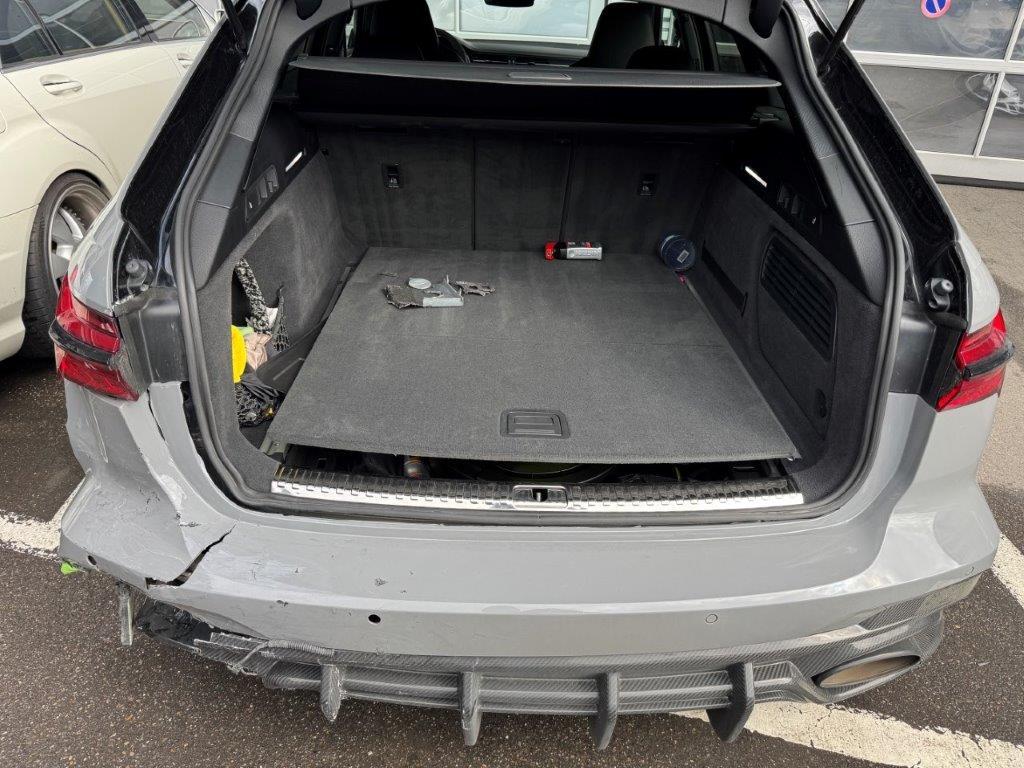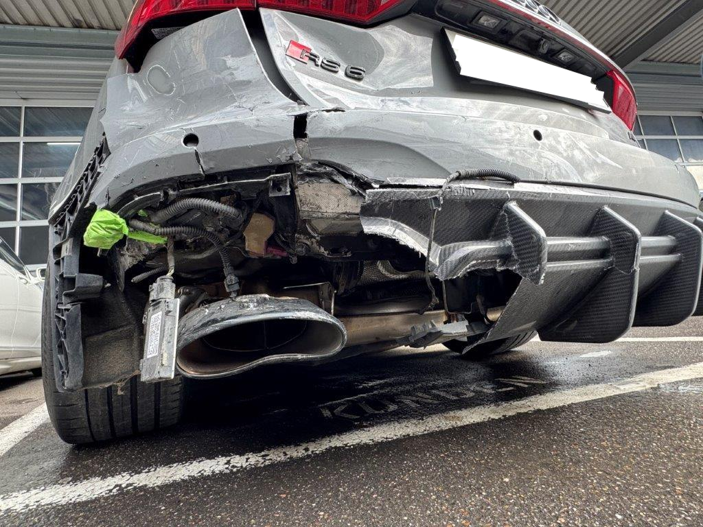 | Schadensbeschreibung | Anprall Heck links: Dabei wurde die Stossstange, der Diffusor, die Heckklappe, die Heckleuchten, die Abgasanlage, das Heckblech, der Kofferraumboden und die Seitenwand deformiert sowie diverse Anbauteile beschädigt - AUFZÄHLUNG NICHT ABSCHLIESSEND / ACHTUNG: Diverse Vorschäden und Deformationen rundum! Tieferlegung / Federungen rechts defekt (weicht von Seite links ab), Ursache unbekannt! Diverse Fehlermeldungen leuchten im Display auf! Keine Sommerräder vorhanden! Diverse Eintragungen fehlen oder werden entfernt! |
