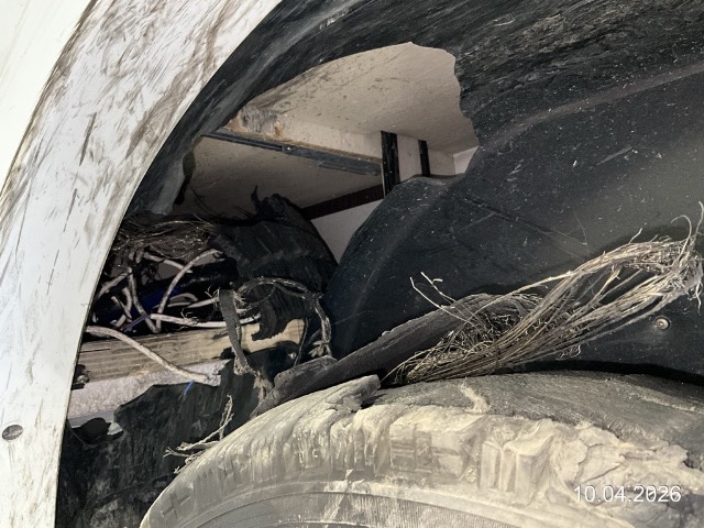 | Schadensbeschreibung | Reifenplatzer hinten links, dadurch diverse Beschädigungen durch Karkasse verursacht. Radhausverschalung, Kabel, Isolierung Heckboden plus Boden unterhalb Bett hinten. AUFZÄHLUNG NICHT ABSCHLIESSEND. Reparaturkosten geschätzt. / Fahrzeug hat AHK und Luftfederung hinten. / Reifen wird ersetzt, damit Fahrzeug bewegt werden kann. / Vorbestandene Schäden: Gebrauchsspuren |