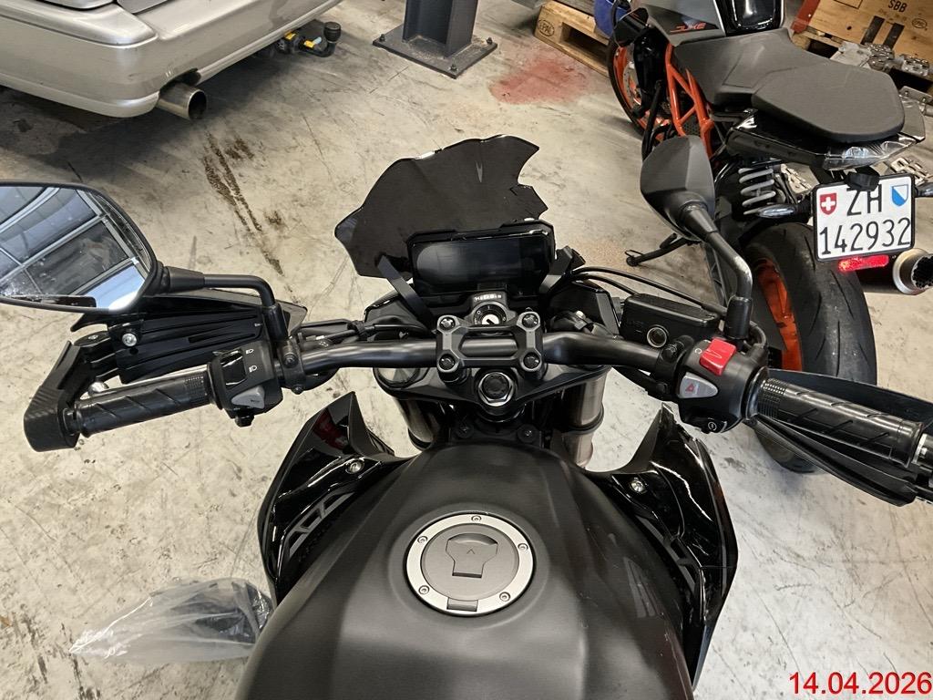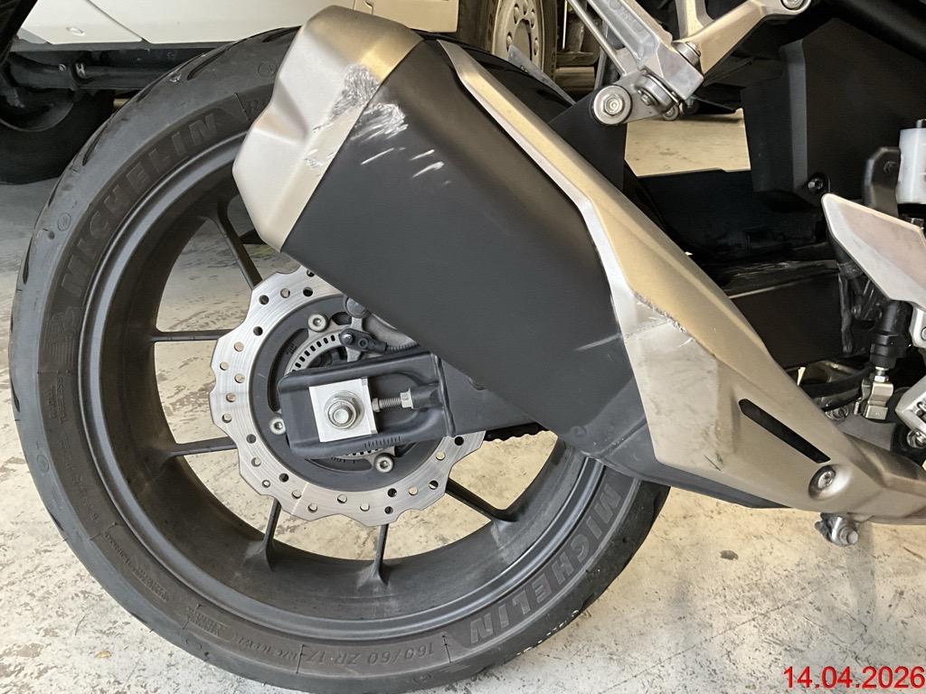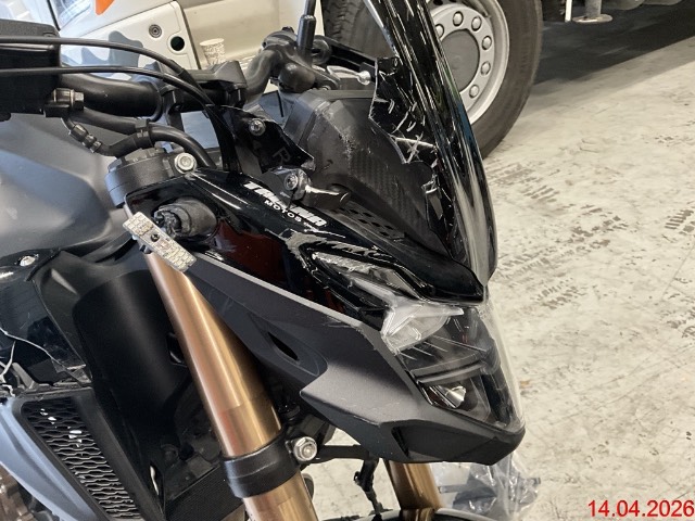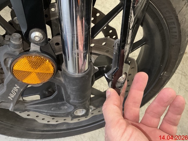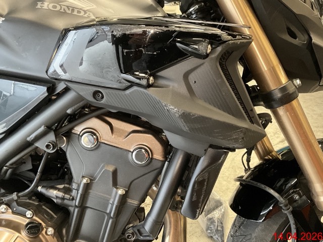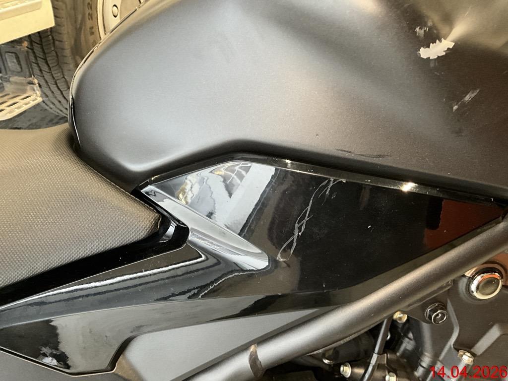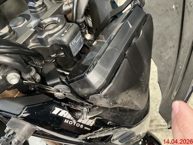 | Schadensbeschreibung | Beschreibung der Schäden: ganze rechte Seite. Gabelfuss rechts gebrochen, Gabelholm zerkratzt, Radabdeckung beschädigt, Cockpitverkleidungen gebrochen, Frontscheibe gebrochen, Scheinwerfer beschädigt, Blinker abgerissen, Lenker deformiert, Spiegel beschädigt, Handschutz beschädigt, Tank eingedrückt, Kühler beschädigt, Seitenverkleidungen rechts gebrochen, Kupplunsdeckel beschädigt, Kupplunsseil ausgehängt, Kuppeln aktuell nicht möglich, Fusbremshebel deformiert, Fussrasten Kratzer, Abgasanlage deformiert. Risiko Lenkkopflager / Rahmen. Motor lässt sich starten, es tritt Kühlmittel am Kühler aus. Fahrzeug wurde zur Schadenermittlung nicht zerlegt, die Aufzählung ist NICHT abschliessend. Vorbestandene Schäden: Gebrauchsspuren. |