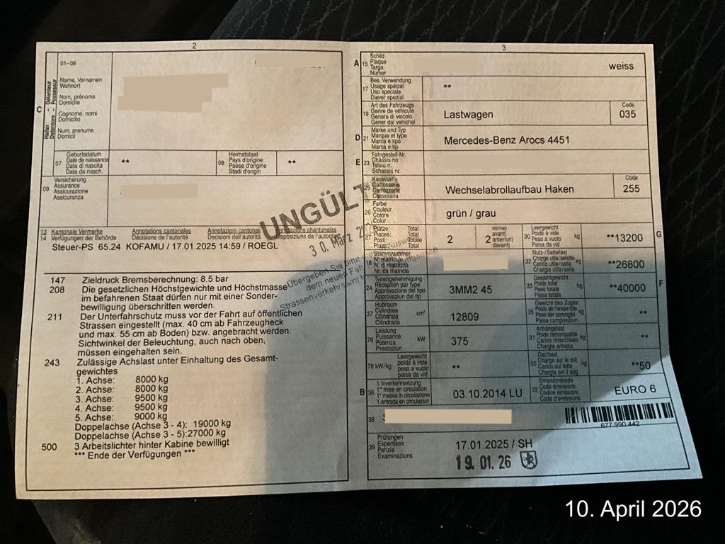 | Fahrzeugausweis | Vorhanden |
