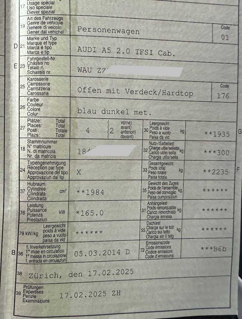 | Model: | A5 Cabriolet 2.0 TFSI |