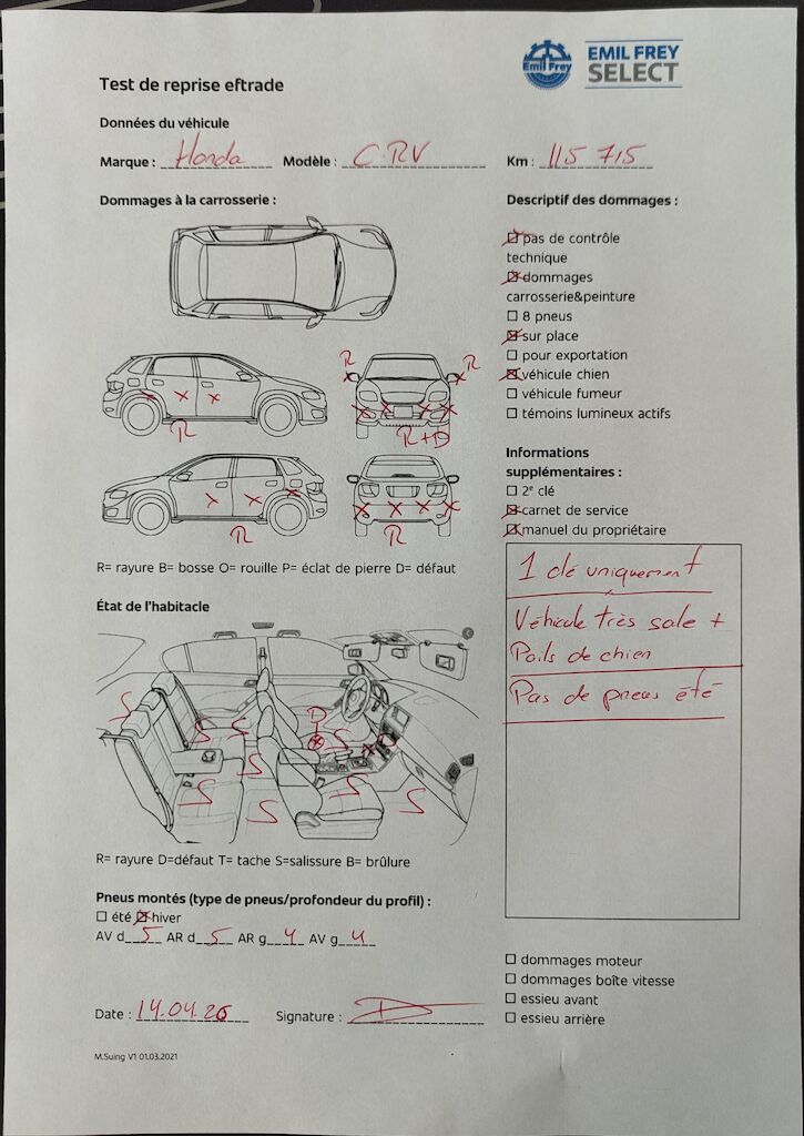 | Koszt naprawy: | 0.00 CHF |