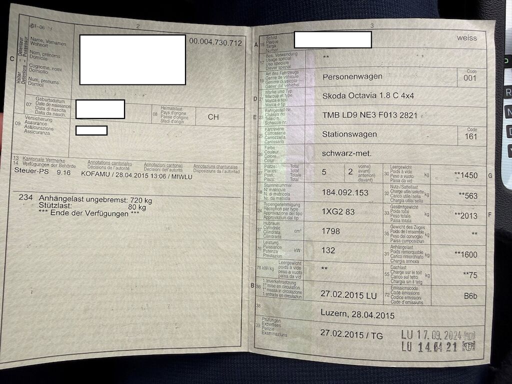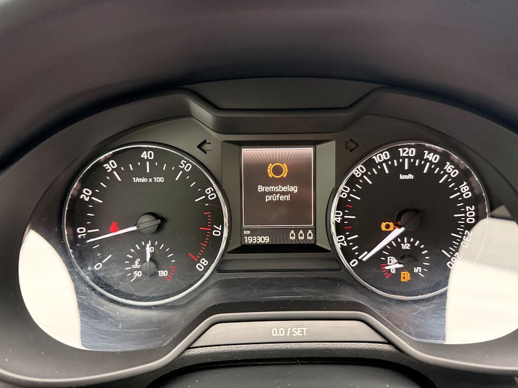 | Anzeige Bremsbelagverschleiss gibt an (dementsprechend Bremsen vorne fällig) Diverse kleinere Kratzer Grosse Schäden siehe Fotos Fleck auf Dach Original Sommerräder | |