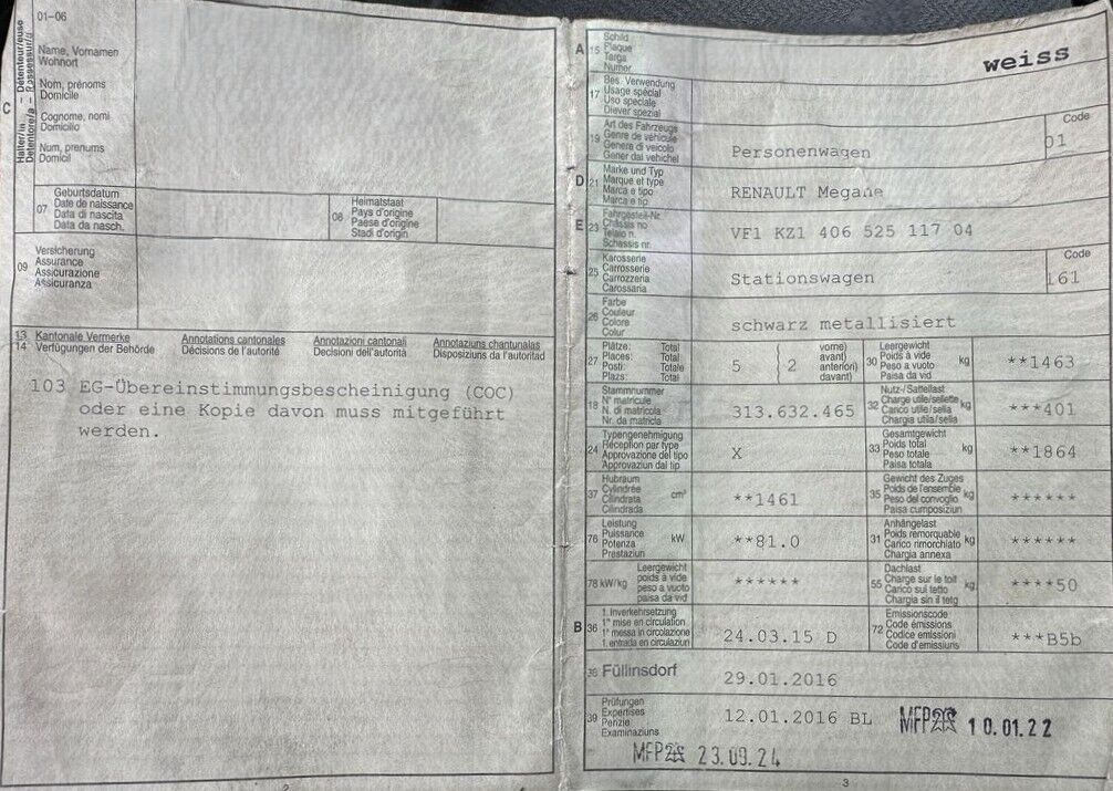 | Konstrukcja: | PKW / Kombi / 5 |