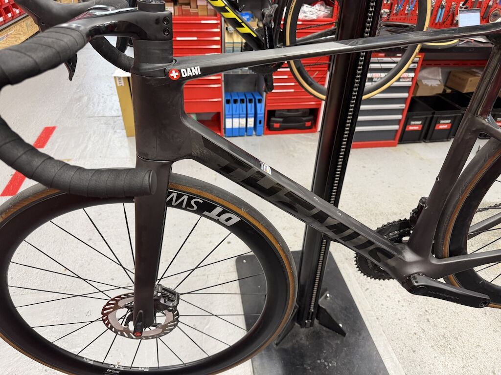 | Opis uszkodzen: | Kollision mit 40km/h zwischen Rennrad und Auto. Man sieht optischen keinen Schaden am Rahmen oder Gabel, die Firma Thömus Bikeworld empfiehlt den Carbonrahmen zu ersetzten. DT Swiss ERC Felge hinten ist beschädigt, Felge vorne lauft unrund, Powermeter Shimano Ultegra ist verkratzt. Neupreis im August 2025 war CHF 9395.-. Siehe Liste Komponenten! |