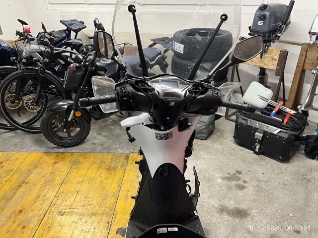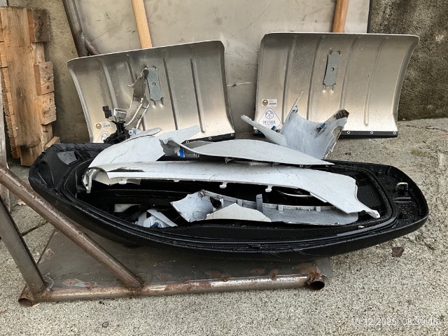 | Schadensbeschreibung | Beschreibung der Schäden: Frontschaden: Front, Rad, Gabeln mit Rahmen komplett gestaucht. Front und Seitenschalen gebrochen. Motor läuft, Rad steht aber an, nur beschränkt rollbar |
