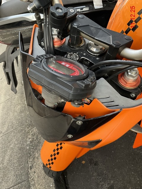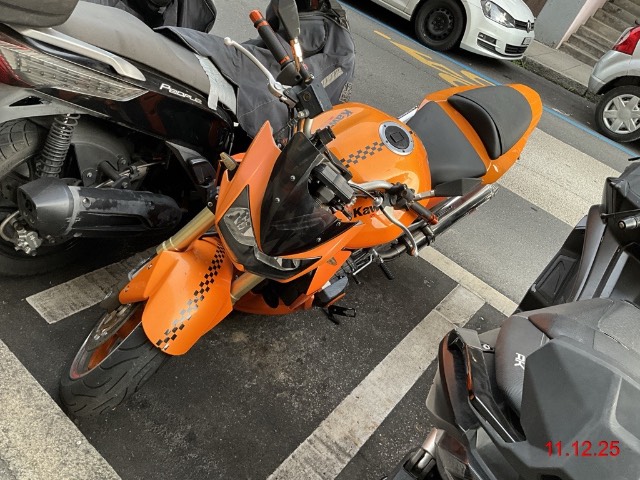 | Schadensbeschreibung | Choc arrière puis chute côté gauche. Boucle arrière, échappement, carénages gauche, bulle, compteur... / Dommages préexistants: traces d'utilisation |